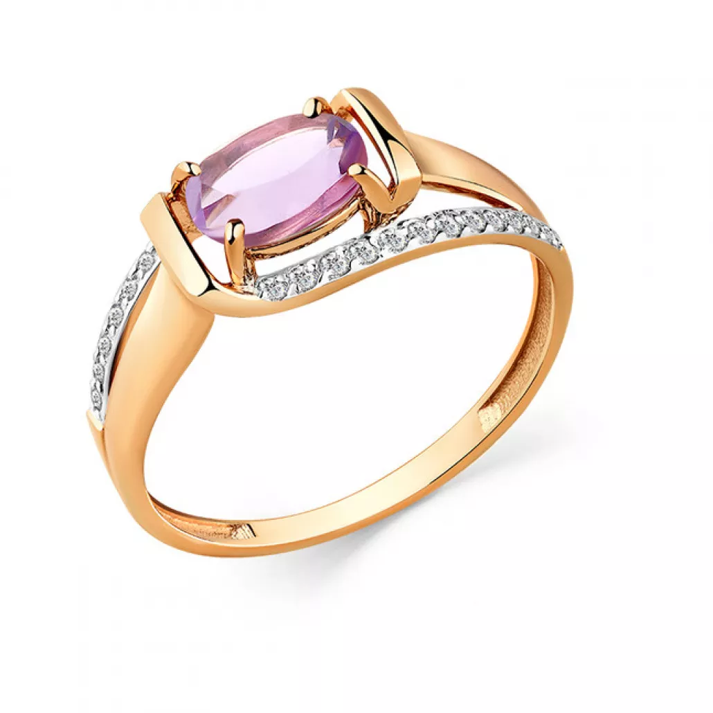 Кольцо с аметистом и фианитом из золота Артикул: 01-3-462-0201-011