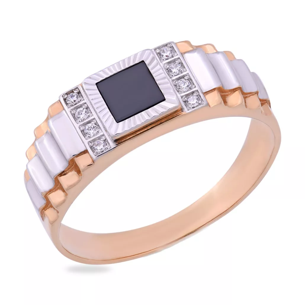 Кольцо-печатка с фианитом из золота